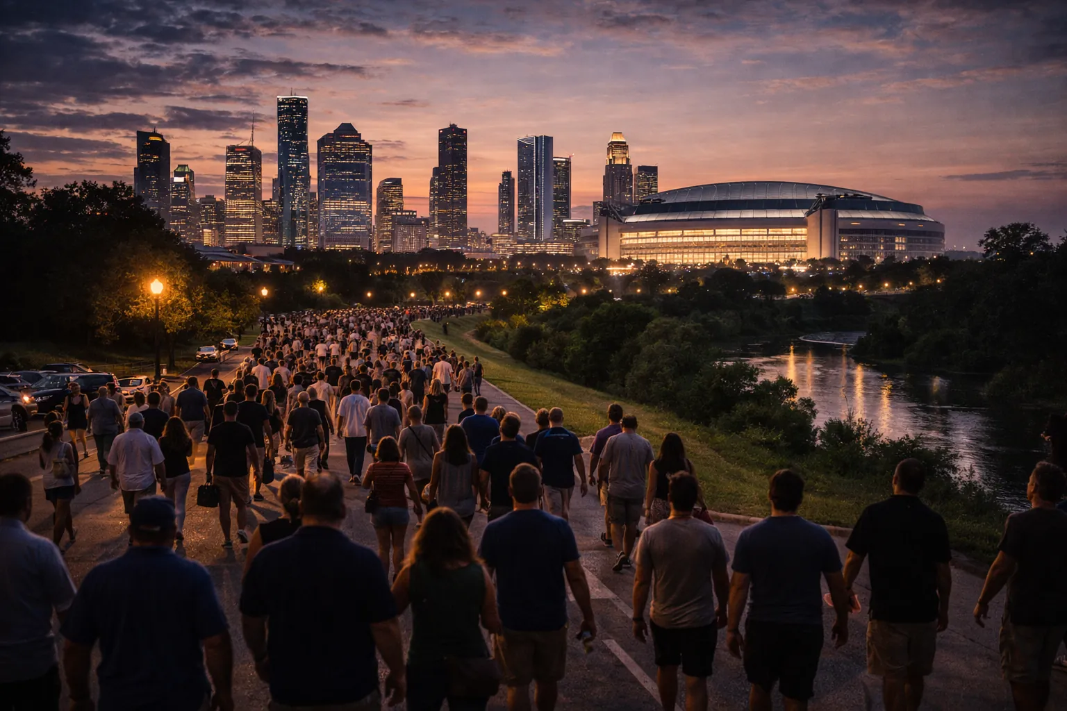 No stadiums are listed for Houston yet; venue listings appear as mapping expands.